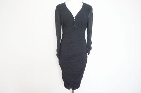 レナランゲのワンピースを出張買取ご利用のお客様より買取しました。鎖骨をバランスよくみせてくれるだけでなく、体のラインに沿って上品に着ていただける1点です。豪華な飾りや柄がなくともエレガントな雰囲気になります。赤や青のアイテムをバランスよく加えても素敵になるのではないでしょうか。キラキラ光る大きめのアクセサリーをつけるのもおすすめです。