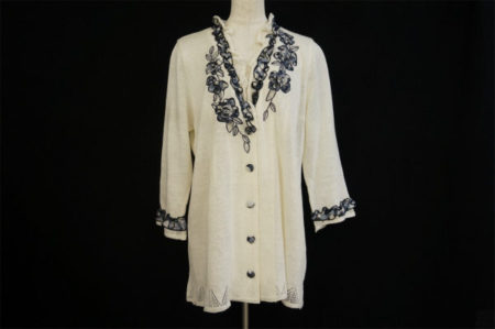 アトリエサガンのカーディガン・サイズLを出張買取にて買取しました。清潔感のあるホワイトに上品な刺繍が映えるカーディガンです。リネン素材のため、風通しがよく着心地にもこだわりが詰まっています。合わせやすいカラーなので、ボトムスはビビットカラーを持ってきてもブラックを持ってきてもOK。たくさんのコーディネートが楽しめる1着です。