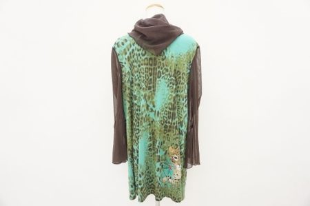 清楚で上品なミントグリーンを基調としたヒョウ柄で、甘すぎず辛すぎずの絶妙なバランスのお洋服です。