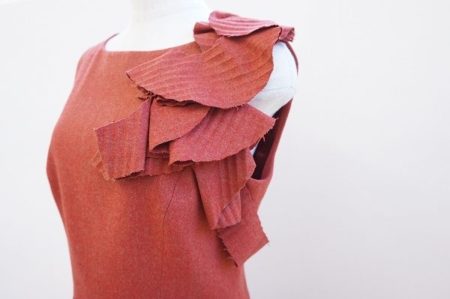 色鮮やかレッドカラーと同じ布で作られたディテールが見る人の目も楽しませ、華やぎを与えてくれます。