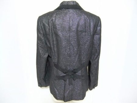 ラメ糸が入った華やかな生地で仕立てたジャケット。