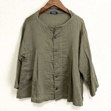 出張買取でプランテーションのカーディガンを買取しました。サイズはMです。濃すぎないカーキですので程よい爽やかさを持って着ていただけます。ノーカラーで決まり過ぎないのもいいですね。七分袖でスッキリなのも見どころです。