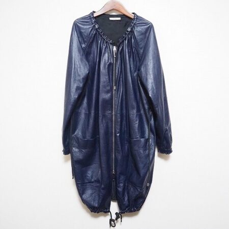 出張買取にてセリーヌのコートを買取しました。サイズは40です。紺色のレザーが味わい深く程よい華やかさを演出してくれます。丈も長くてすっぽり隠せますね。