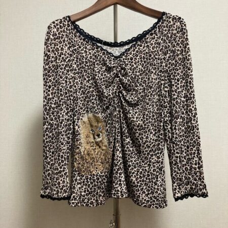 宅配買取にて伊太利屋のカットソーを買取しました。サイズは9号です。ギャザーがよっていてVネックもゆるやか。柔らかい雰囲気を作り出してくれます。ヒョウ柄を細かくしっかり詰めることで強すぎずオシャレに決めていただけるのがいいですね。
