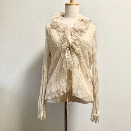 かっこいい路線が多い伊太利屋ですが、可愛らしい雰囲気のカーディガンが入ってきました。出張買取にて買取したアイテムです。ゴージャスなレースが使われ楽しませてくれます。女性として自信を持てそうな1着です。
