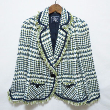 伊太利屋のジャケットを買取しました。サイズは11号です。綺麗なライン、適度に目立たせてくれるチェックがポイントのジャケット。無地のハイネックを合わせて上品さを持ち合わせつつしなやかに決めていただけます。