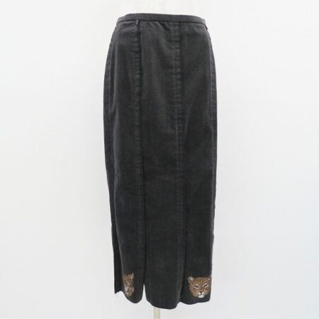 伊太利屋のスカートを出張買取ご利用のお客様より買取しました。目立たない程度にひょっこりと現れるアニマル柄がなんとも可愛い1枚です。黒なのでシックに色っぽく決めていただけます。ジャケットからシンプルシャツまで合わせていただけるスカートです。