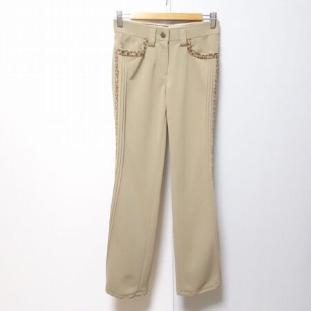 アクイールを長くご利用下さっているお客様より、伊太利屋のパンツを買取しました。女性のラインを意識して作られた綺麗なパンツ。チラリとのぞく豹柄もポイントです。