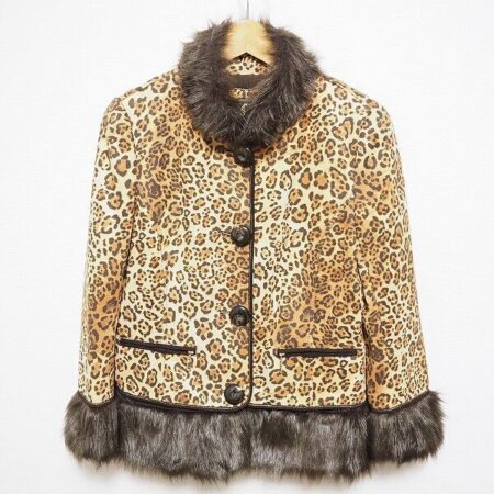 出張買取にて伊太利屋のジャケットを買取しました。強いヒョウ柄を抑えるように装飾されたフェイクファー。濃いブラウンでどこか柔らかさも感じいいバランスとなります。