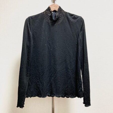出張買取にて伊太利屋のカットソーを買取しました。サイズは13です。黒の締まった雰囲気とレースの可愛らしさが見事にタッグを組んだ1枚。ラインストーンもついていて抜かりないおしゃれが実現します。