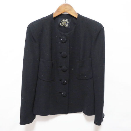 出張買取にて伊太利屋のジャケットを買取しました。サイズは9号です。黒でまとまりがありカッコよさが際立つジャケット。ボタンも大きめで見ごたえがあります。