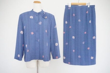 三年坂は華やかで唯一無二の絵柄が特徴的なブランド。ちりめん素材のセットアップを出張買取ご利用のお客様より買取しました。セットアップなので使いまわしがきくのが最大のポイント。濃すぎないブルーなのでモノトーンから鮮やかなカラーまで幅広く合わせていただけます。首元のさりげない花モチーフもオススメです。