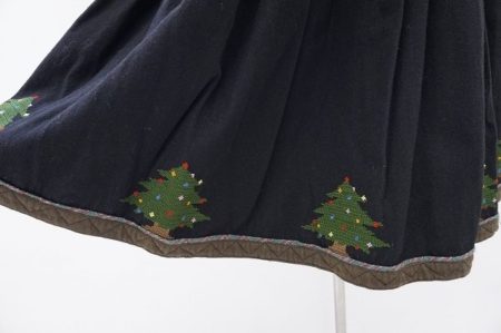 裾のクリスマスツリーデザインがとっても可愛く、さらに裾のキルティングがあたたかさを感じさせ、ほっこりするような優しさに溢れたスカートです。