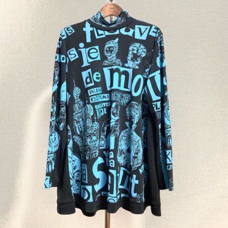 出張買取にてトクコのチュニックを買取しました。黒にしっかりと映える青色が素敵です。長さもあるので気になる下半身も上手く隠しつつロックに楽しんでいただけるかと思います。