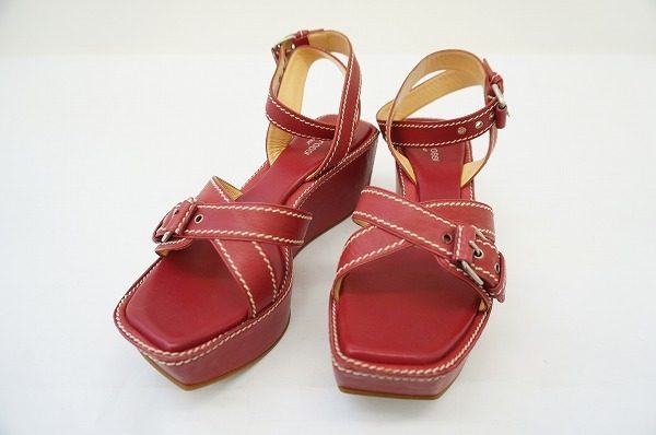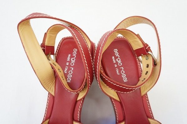 今回、こちらでご紹介させていただくのは、セルジオロッシの真っ赤なサンダルになります。ヒールが高めにはなりますが、厚底でウエッジソールになっているので、脚に負担をかけることなく、脚を長く細くきれいに見せてくれます。