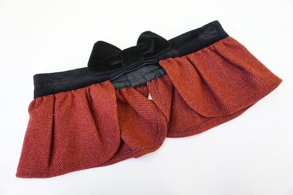当アイテムのキーポイントとなる腰回りのフリルは可愛くて若々しい女性を演出してくれるのですが、着脱可能ですのでその日の気分に合わせてコーデ幅を拡げられますし、ウエストの黒リボンがとってもチャーミングなので他のスカートと合わせてみるのも面白いです。