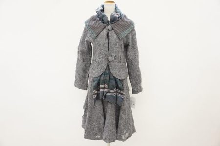 秋冬のファッション定番のチェックスカートとボレロ風トップスのセットに、グリーンチェックのマフラーといった、あたたかさとオシャレ感を両立させたコーディネートがすでに完成されているお洋服です。
