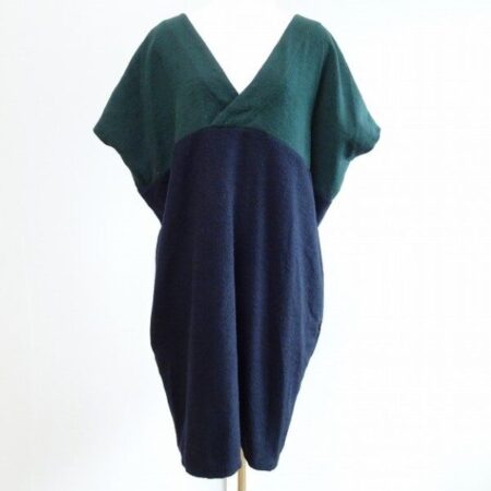 出張買取にてソウソウのワンピースを買取しました。グリーンとネイビーのバイカラーの組み合わせが落ち着きを感じさせてくれます。袖もないのでスッキリ着られますね。