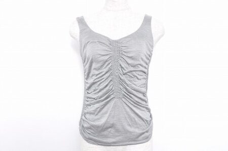 ヒューゴボスのタンクトップを宅配買取にて買取しました。ギャザーの雰囲気に品を感じつつもどこかスタイリッシュになる1枚です。シルクを使用しているため、お肌に優しいのも嬉しいですね。控えめな雰囲気なので花柄のスカートや濃いお色のパンツなどと合わせていただいても素敵です。