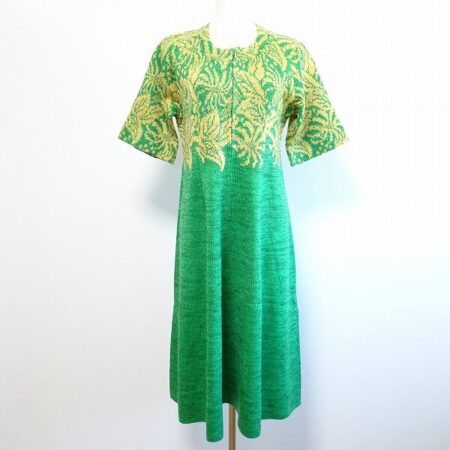 出張買取にて斉藤都世子のワンピースを買取しました。緑と黄色の鮮やかさが素敵。自然なテイストがまた素敵です。シルエットもメリハリがありほどよいしなやかさを出していただけます。