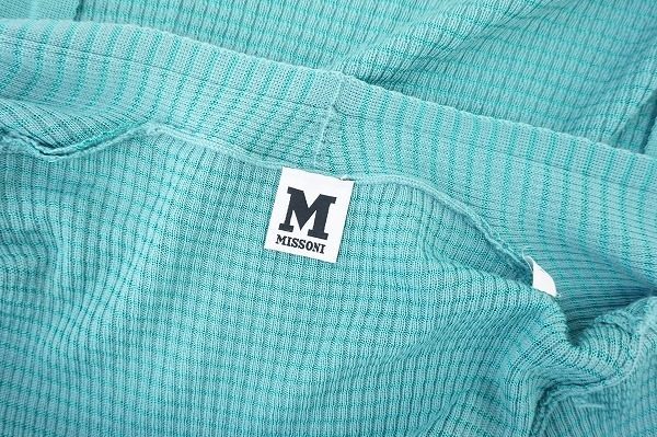 そんな異色の経歴を持つミッソーニのアイテムがこちらです。大胆なロング丈と鮮やかなターコイズブルーが魅力のカーディガン。ガウンと呼ぶ方が相応しいほど、リラックスした着心地を提供してくれそうな、ゆるく着られるアイテムです。