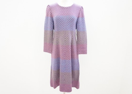 サイトウトヨコの長袖ニットワンピースを美品状態で買取させて頂きました。優しい三色の色味とピンドットが大人フェミニンな雰囲気で素敵なアイテム。ラウンドネックとセミフレアで優しい雰囲気を演出してくれます!カーディガンやネックレスなどとの相性も良いので御洒落の幅が広がります。ひざが隠れる程よい丈のワンピースは1枚でも着やすいですよね。