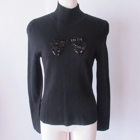 エムズグレイシーのセーターを出張買取ご利用のお客様より買取しました。サイズは38号です。ボトルネックなので寒さも安心の1枚。黒主体のセーターに程よく輝くスパンコールがマッチして欲張り過ぎず綺麗に仕上げてくれます。