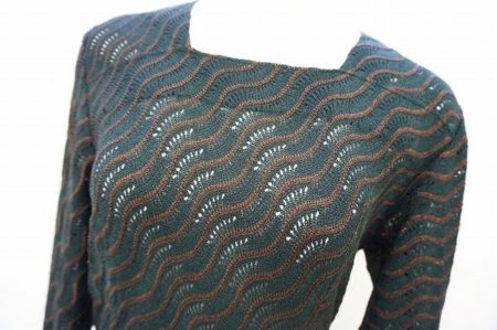 深緑色が上品で大人女性の品格を上げるような落ち着き漂うお洋服です。
