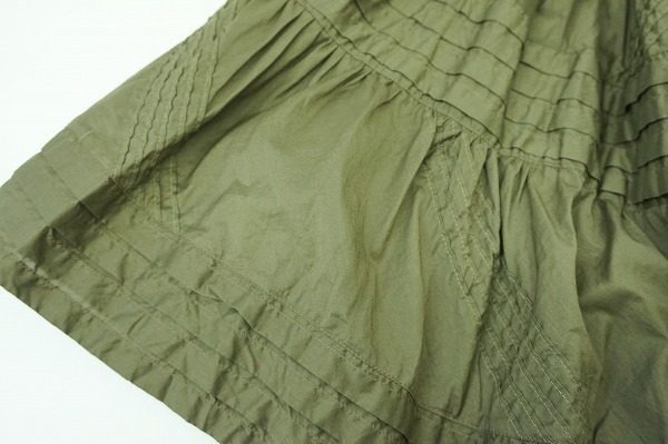 そんな大人っぽいテイストと時にちょっぴり個性的な雰囲気、そして他にないこだわりのディテールがオシャレのアンテナ高めの女性たちから絶大な支持を得ているレキップヨシエイナバより、深みのあるグリーンがノーブルで上品なティアードスカートをご紹介いたします。