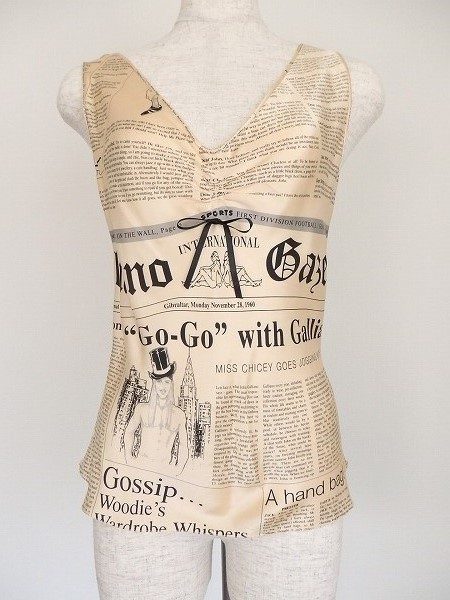 そんなジョンガリアーノが自身の名前を冠して発表していたブランドから、今回はニュースペーパープリントのシルクトップスを買取りさせていただきました。新聞柄のプリントはジョンガリアーノが好んで使うまさにアイコン的モチーフ。