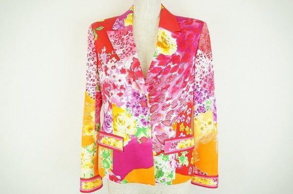 今回ご紹介させていただくのは、レオナールのジャケットです。こちらのジャケットもまた、レオナールのプリントの技術が光っている逸品です。全体的に明るいお色味で斬新さもありますが、レオナールらしい気品というのを損なっていません。エレガントさを感じさせてくれる仕上がりになっています。