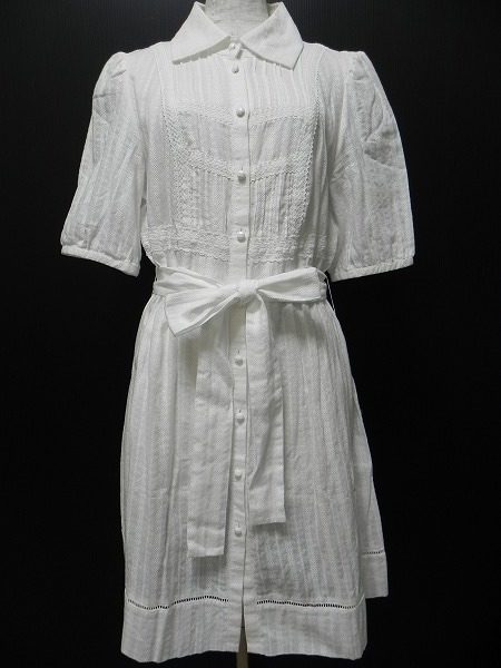 表情のあるドビー織生地を用いフロントにはピンタックや繊細なレースがあしらわれているので、カジュアルなシャツワンピースでもシンプル過ぎない仕上がりになっています。