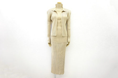デザイナー・イッセイミヤケのあまりにも有名なブランド・プリーツプリーズから、スリーピースのセットアップを買い取り査定させていただきました。