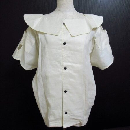 出張買取において山本寛斎のブラウスを買取しました。変形デザインではありますが、ボリューム感が程よい仕上がりとなりおしゃれ。可愛らしく大胆に着ていただけるかと思います。タイトなスカートもパンツも合わせたいですよね。