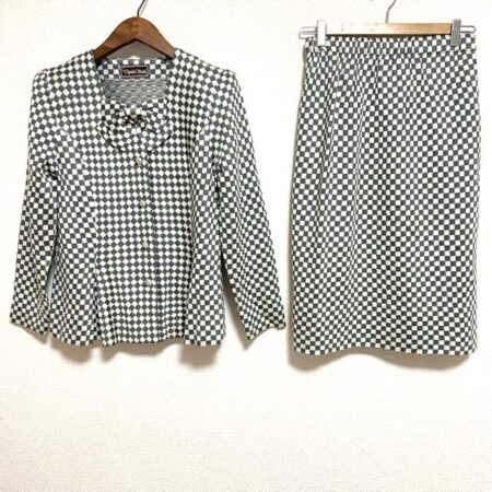 出張買取にて斉藤都世子のセットアップを買取しました。落ち着き放つ市松模様がレアです。リボンがついているので可愛らしさもあり女性の繊細さをアピールしていただけます。