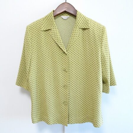 黄土色ですが全体的に爽やかな印象に仕上げていただけるカットソー。ブランドは三年坂です。細かい柄も程よい味わい深さを残しつつ綺麗に仕上げていただけます。首周りもすっきりして使いやすいお洋服です。