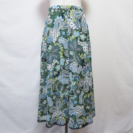レリアンのスカートを出張買取ご利用のお客様より買取しました。涼し気なトーン、はっきりとした柄が楽しめるスカートです。無地が増えがちなトップス。モノトーンでも寒色でも気にせずきていただけます。