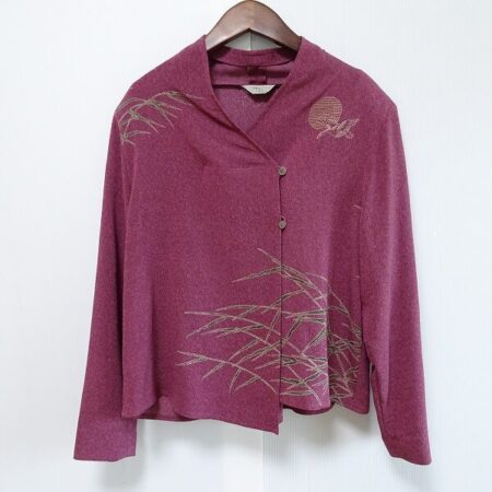 Mサイズ 三年坂のブラウスを買取させていただきました。出張買取にて買取したアイテムです。赤の様な紫に色っぽさを感じます。和柄ですが渋すぎないので気軽な気持ちで着ていただけます。