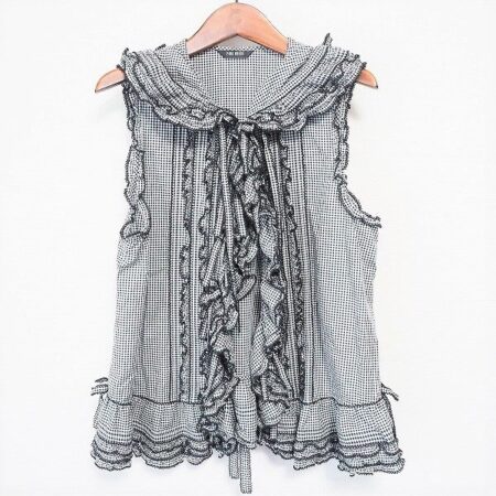 出張買取を活用しピンクハウスのベストをご相談くださったお客様がいらっしゃいます。無事に買取いたしました。ギンガムチェックではありますが、細かくてどこか軽めに着ていただけます。満点のフリルもいうことなしです。