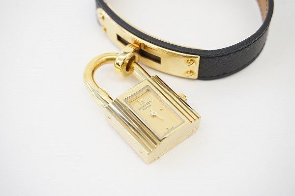 さて、今回買い取りをいたしましたケリーウォッチですが、ケリーバッグと合わせてデザインされており、ケリーバッグの特徴である南京錠をモチーフにされている時計です。