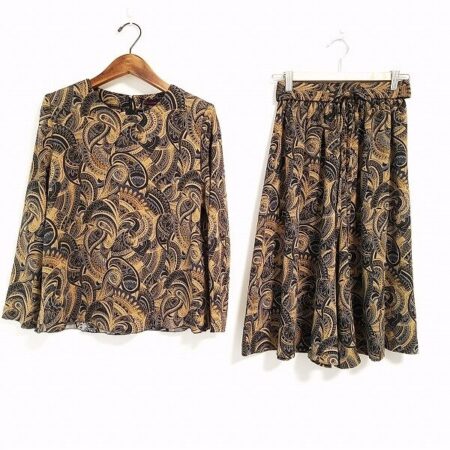 パワーを貰えそうな素敵な柄が印象的な詩仙堂のセットアップ。出張買取にて買取しました。ブラウスは上品なデザインですし、何よりスカートがフリルになっていて可愛いのが印象深いです。シンプルなトップスと合わせやすそうですね。