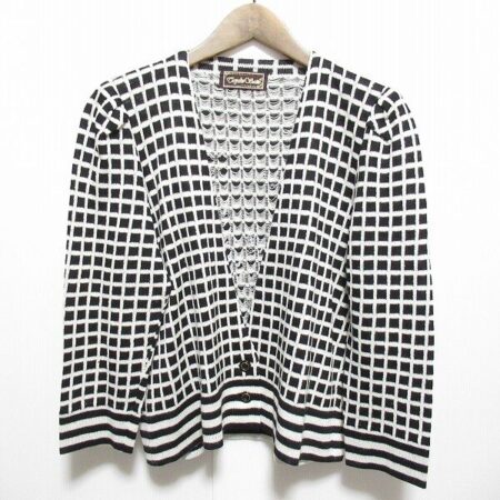 出張買取で斉藤都世子のカーディガンを買取しました。白と黒のシンプルな色合いです。格子柄メインにボーダーを合わせることで程よく締まります。ジャケットのようなきっちり感もいいいですね。