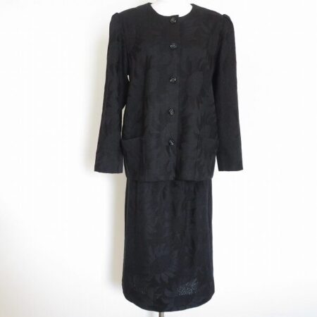 出張買取ご利用のお客様より斉藤都世子のセットアップを買取しました。黒のセットアップですが、ニット素材。綺麗な雰囲気がしっかりあります。よく見るとお花モチーフが隠れていて2倍も3倍も気持ちが高ぶってしまいますね。