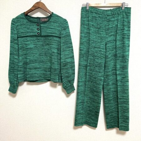 出張買取において三年坂のセットアップを買取しました。濃くて鮮やかな緑色が心も照らしてくれるおしゃれなアイテムです。パンツにはセンタープレスがしっかり入っているのでスラリとした美脚にも仕上げられます。
