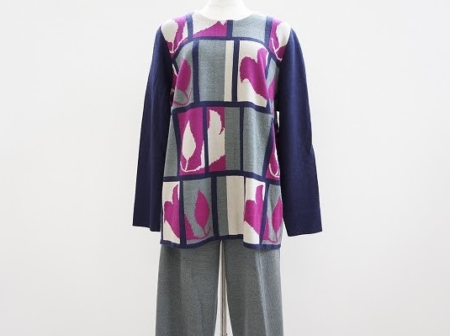 今回ワイドパンツと長袖カットソーのセットアップを美品状態で買取させて頂きました。ブランドは大人女性に人気のサイトウトヨコのアイテムですので上質なニットで着心地抜群。グレーベースに紺と白、紫の組み合わせがお洒落に華やかに魅せてくれます。リーフ柄はどの世代でもトレンドに左右される事無く着れるのでセットでも単品でも着まわしやすいアイテム。