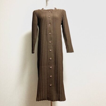 斉藤都世子のワンピースを出張買取ご利用の方よりお譲りいただきました。都会的なお色味のブラウンが素敵なワンピースです。リブニットなので着膨れもせず美しいラインを演出できるかと思います。