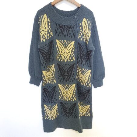 斉藤都世子のワンピースを出張買取ご利用のお客様より買取しました。カーキ×蝶が豪華さを上げてくれます。女性の華奢な体に合わせたデザインでスレンダーで上品な雰囲気を演出。