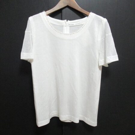出張買取サービスにて斉藤都世子のニットを買取しました。ビーズの輝きが綺麗で程よいシンプルさも出せるのが注目点。ニットとは思えないスレンダーさも見ていただきたいです。