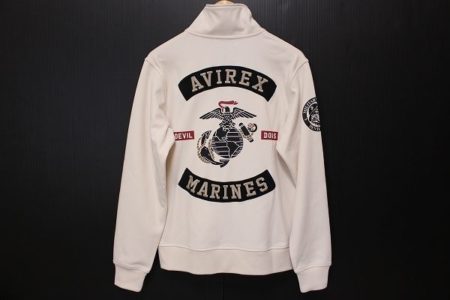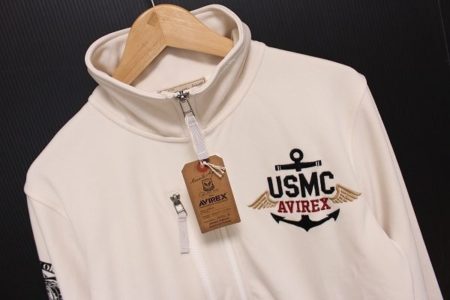 アヴィレックスらしい胸元と背中のロゴのデザイン入りのジップアップジャケットを買い取らせていただきました。