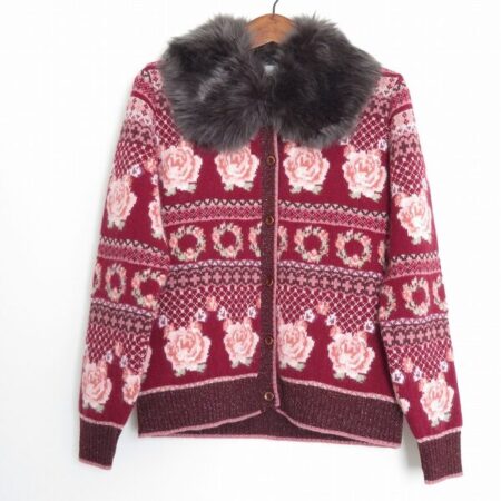 出張買取でピンクハウスのカーディガンを買取しました。エンジとピンクの可愛らしいバランスの色合いに心を掴まれる1点。ファーが付いていますのでほどよい上級感を出していただけます。カジュアルなスタイルにも合わせやすいですね。